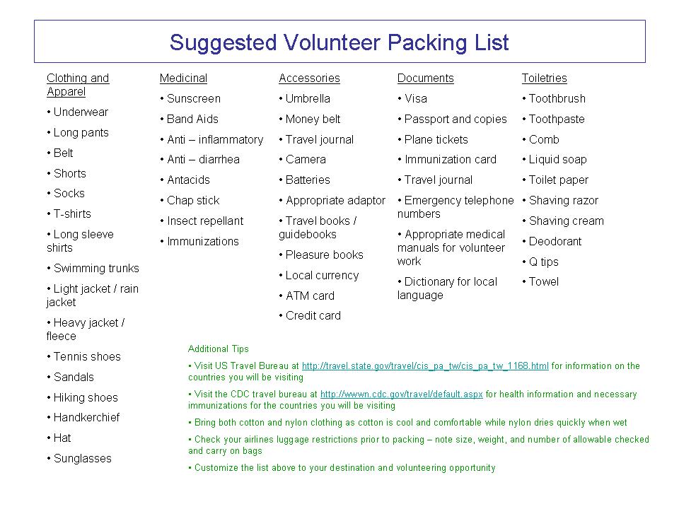 -Visit the CDC travel bureau at for health information and necessary immunizations for the countries you will be visiting